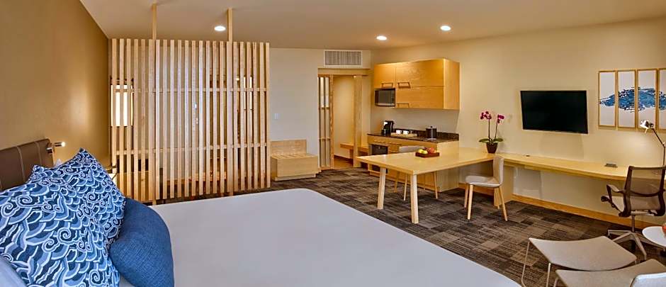 164.04 ft, Contemporary Asian Design, with acces to Brisas Business Club, air conditioning, internet wi-fi, king size bed, bathroom with rain shower and Toto Washlet toilet, hair dryer, vanity mirror, 42” flat screen TV, ironing set, safety deposit box, desk with multicontacts station, Herman Miller chair, telephone, radio, sitting area with a love seat, kitchenette, multi-purpose island. No children allowed.